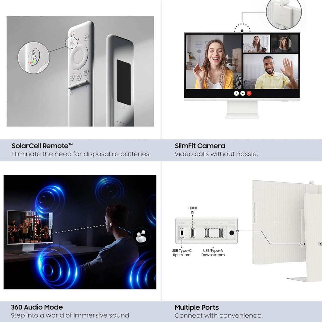- CONÉCTESE CON COMODIDAD: Con puertos USB-C, HDMI y USB-A, puede conectarse al Smart Monitor sin adaptadores; cargue sus dispositivos, transmita datos y aproveche al máximo su configuración multipantalla, o hágalo todo a la vez, gracias a los 4 puertos disponibles