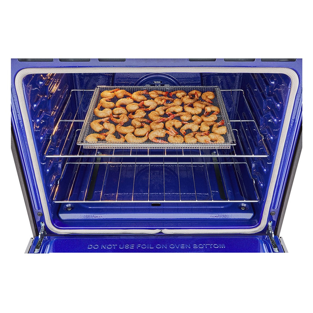 La tecnología InstaView te permite ver el interior del horno sin necesidad de abrir la puerta, manteniendo la temperatura constante y asegurando una cocción perfecta. Además, la freidora de aire de gran capacidad integrada te permite disfrutar de alimentos crujientes y saludables sin el exceso de aceite, haciendo de esta estufa una opción versátil y saludable para tu hogar.