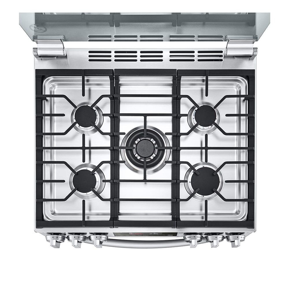 - Cocción precisa y eficiente: La Estufa a Gas LG garantiza una distribución uniforme del calor, permitiendo una cocción perfecta de tus platillos.